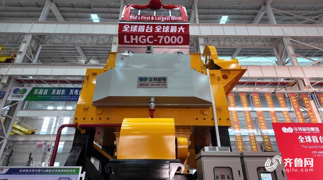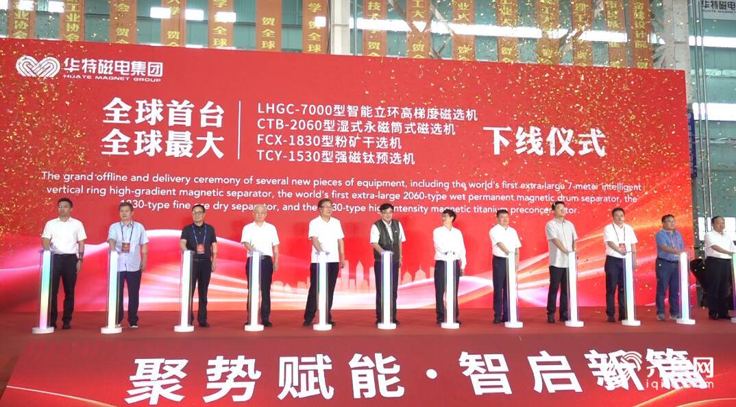 8月9日上午,由山东华特磁电科技股份有限公司自主研制的全球首台特大型7米智能立环高梯度磁选机,全球首台、全球最大2060型湿式永磁筒式磁选机、1830型粉矿干选机、1530型强磁钛预选机等新装备在潍坊市临朐县下线交付。