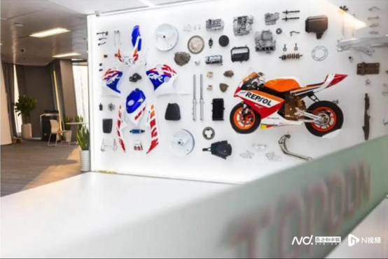 TOPDON工区研发部门外,拆解的摩托车展示机械构造。