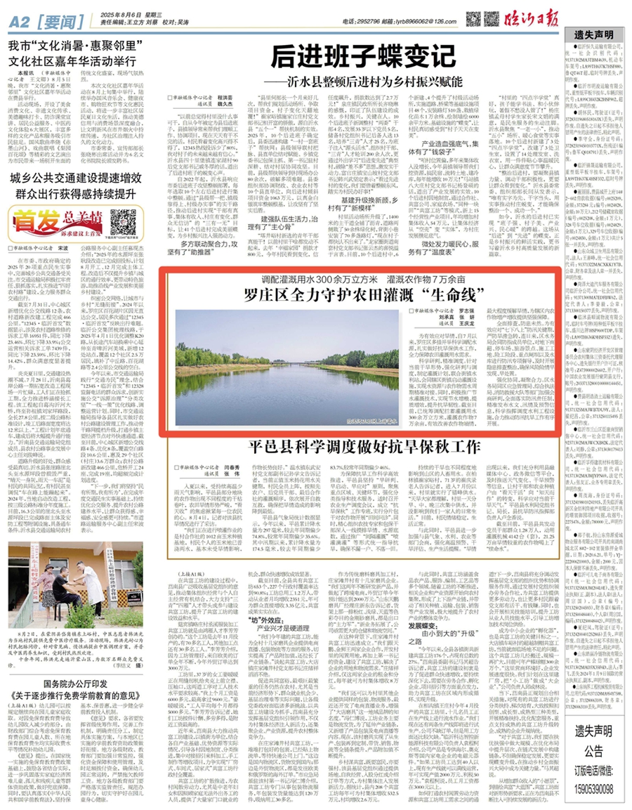 为有效应对旱情,自7月以来,罗庄区多措并举科学调配水源,扎实做好抗旱保供水工作,全力保障农田灌溉用水需求。