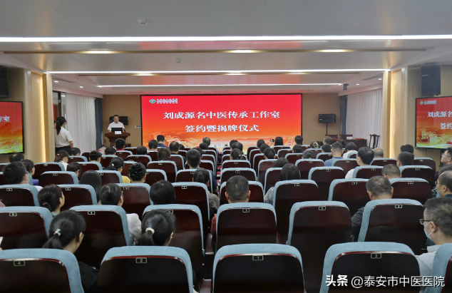 泰安市中医医院党委书记葛菁致欢迎辞,他表示,“刘成源名医工作室”落户泰安市中医医院,必将有力提升医院的中医药服务能力水平,培养造就一批中青年优秀中医专业人才,塑造医院品牌与标杆效应,进一步提升医院影响力和高质量发展水平。他强调,医院将以工作室成立为契机,充分发挥名医大家“师带徒”效应,持续推进中医药服务体系建设、人才培养和传承创新等工作,不断提升中医诊疗水平,为传承发展中医药事业作出新的更大贡献。