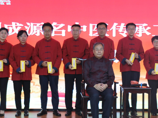 在收徒拜师环节,七位弟子依次上台,恭敬立于刘成源教授面前,齐声诵读拜师帖,表达尊师重道、求学问道之志。弟子们依次上前呈拜师帖、敬茶,刘成源教授向弟子们赠予回徒帖。礼成后,七位弟子恭立请师训。拜师礼的完成,标志着刘成源教授与七位弟子正式结为师徒,为中医药传承事业注入了新生力量。