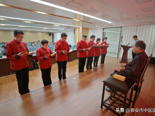 泰安市中医医院党委副书记、院长孟光源在拜师仪式后作总结发言。他热烈祝贺刘成源教授与七位弟子师徒关系的确立,指出这份以“帖”为凭、以“礼”为证的师徒缘分,源于对中医事业的共同热爱和传承创新的共同使命。他强调,从今日起,师徒名分已定,授受之责在肩,这不仅是个人的缘分,更是医院中医事业发展的宝贵机遇。他表示,师承项目关键在于后续扎实落实,坚信在刘成源教授的悉心教导、徒弟的勤奋努力及全院通力协作下,项目必将结出丰硕果实,弟子们定能成长为医院未来发展的中坚力量,刘教授的宝贵经验与学术思想也将在新一代医学人才手中焕发新的生机与活力。