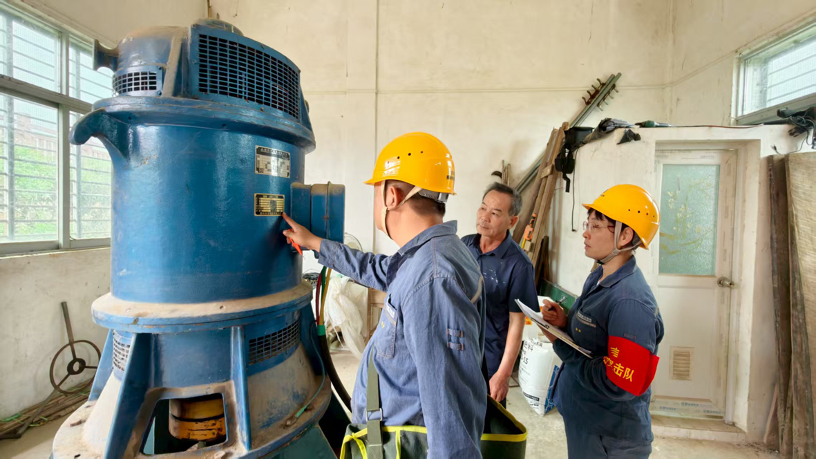 南方电网广东梅州蕉岭供电局组织党员突击队主动走访电排站用户,全面细致排查排涝用电设备安全状况。 肖思 摄