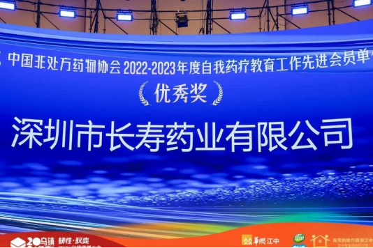 深圳市长寿药业有限公司荣获“中国非处方药物协会2022-2023年度自我药疗教育工作”优秀奖