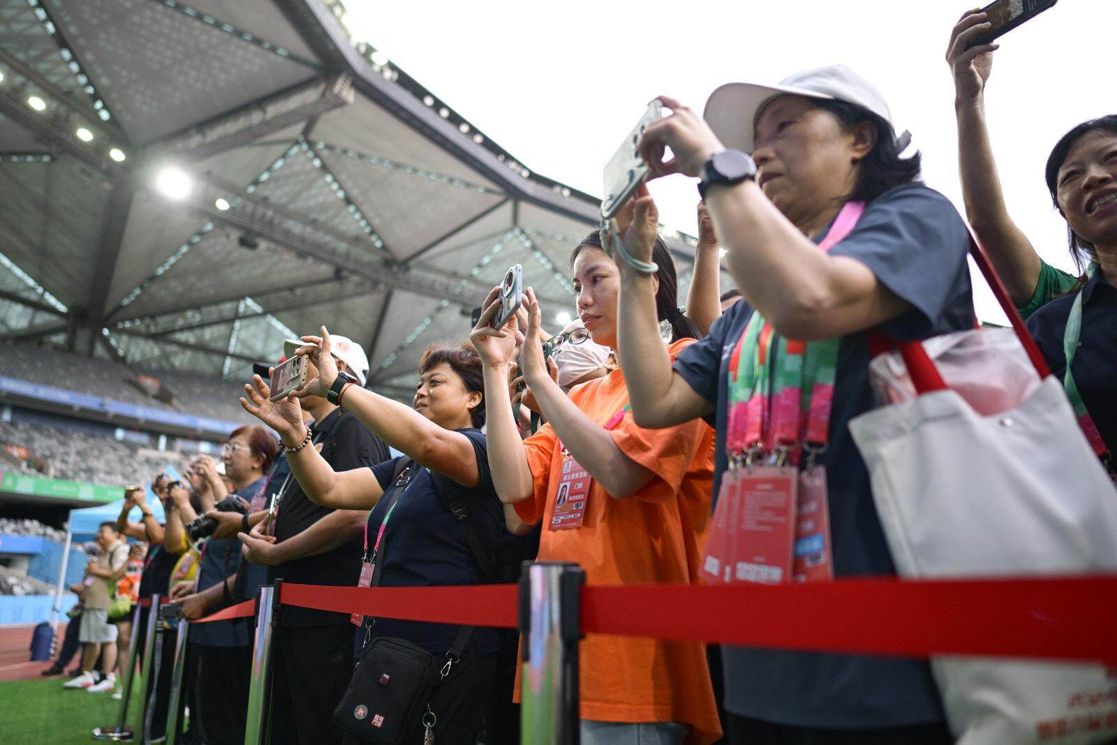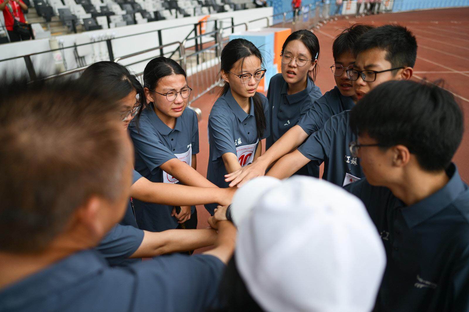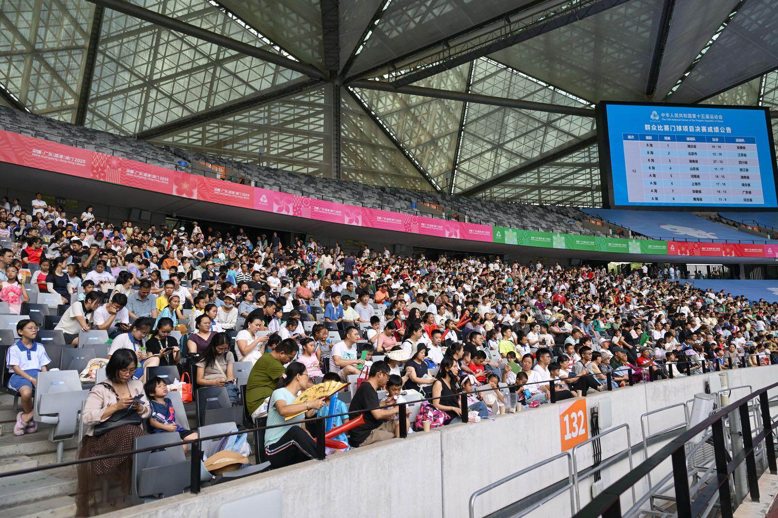 “人山人海,跟看演唱会一样!”上午的观众席热闹非凡,一位小朋友兴奋地对同伴说。深圳市龙岗区同心实验学校、横岗中学等学校组织了中小学生随老师及家长前来观赛。孩子们一边关注赛况,一边“补课”比赛规则,气氛热烈。