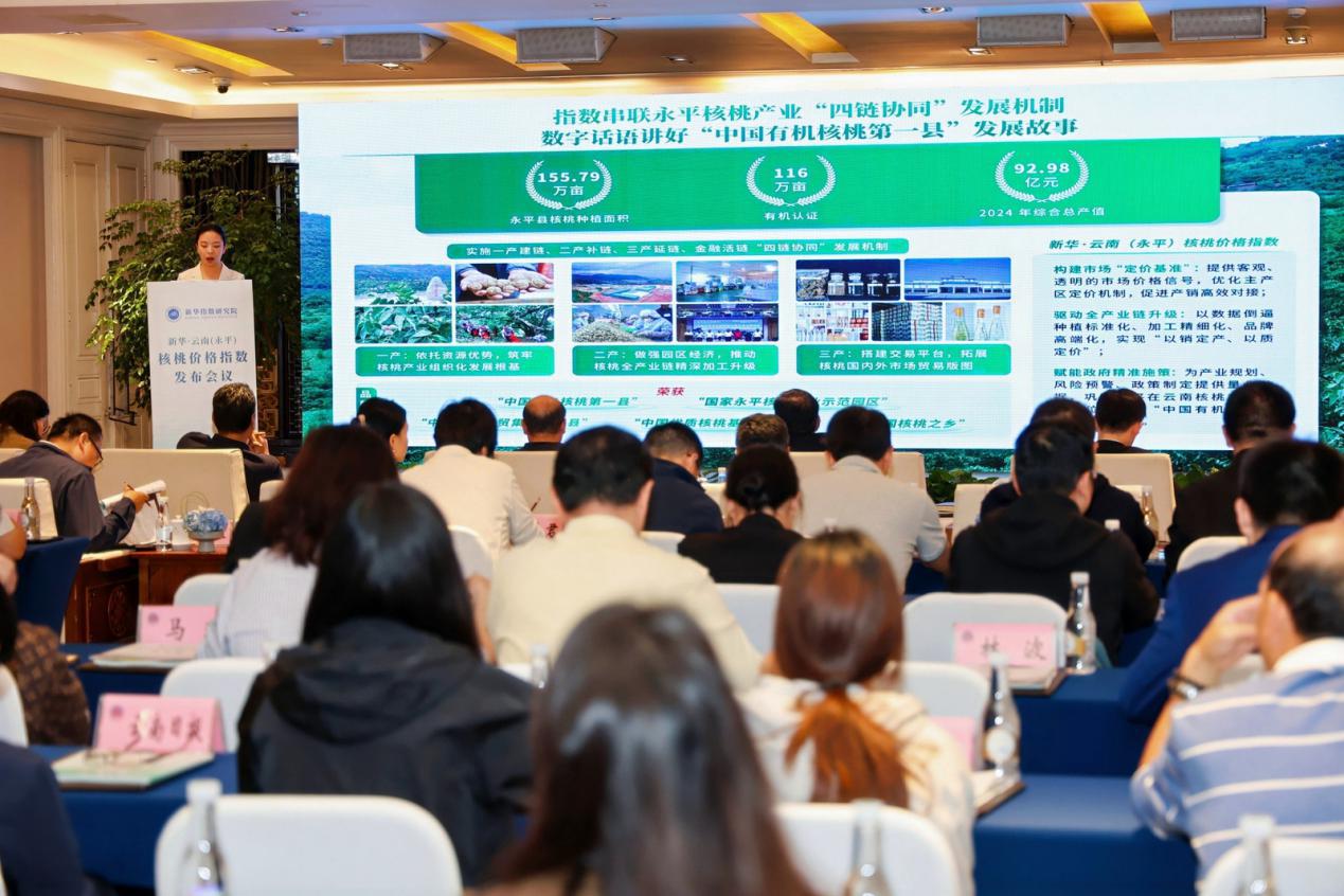 8月22日,由中国经济信息社与云南省大理白族自治州永平县人民政府联合打造的“新华・云南(永平)核桃价格指数2025”在昆明正式发布。发布活动现场,中国林科院首席核桃专家裴东,西南林业大学林学院产业导师王立君等科研机构专家,云南省工业和信息化厅、林业和草原局等部门代表,以及云南核咖供应链管理有限公司(以下简称“云南核咖”)、云南农垦大理核桃产业有限责任公司(以下简称“云南农垦大理核桃公司”)等企业负责人齐聚一堂,共话核桃产业发展路径,为产业高质量发展建言献策。