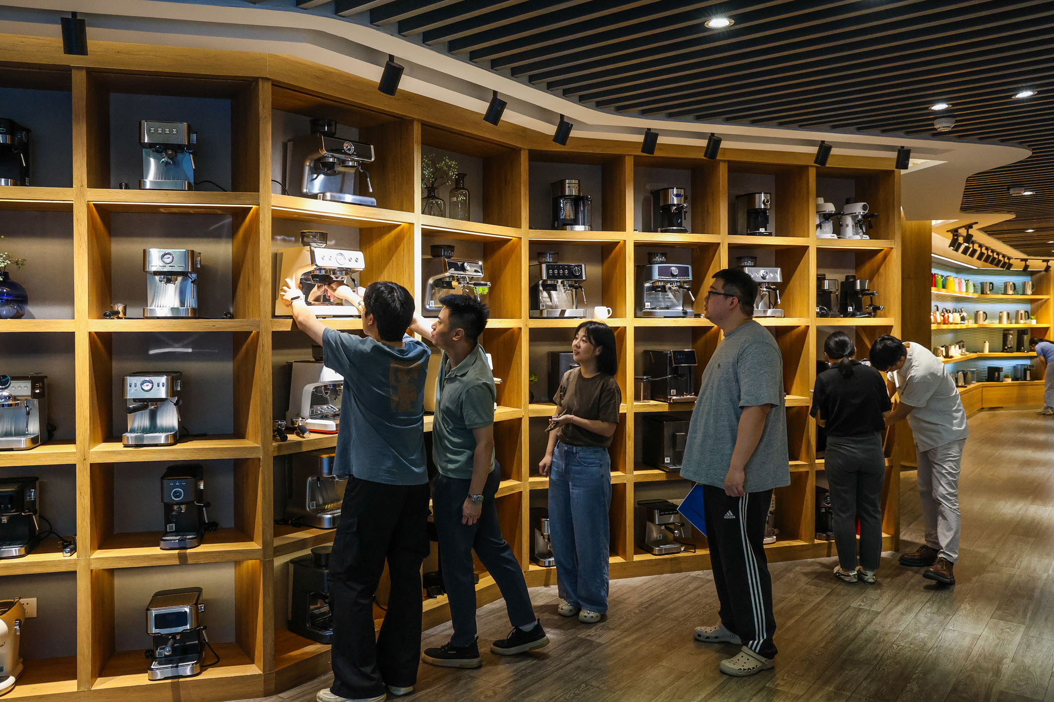 客户在广东新宝股份出口小家电展厅了解产品信息。 新华社记者 刘大伟 摄