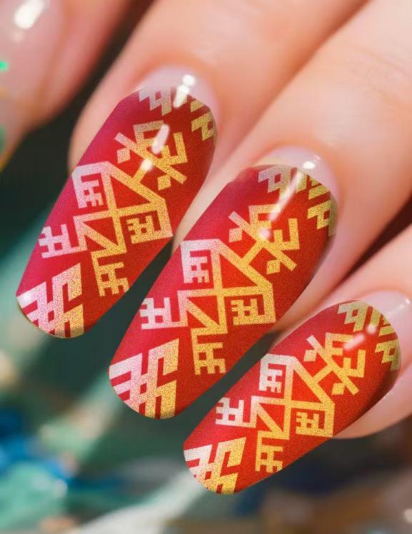 ↑海南黎锦纹样美甲效果图。