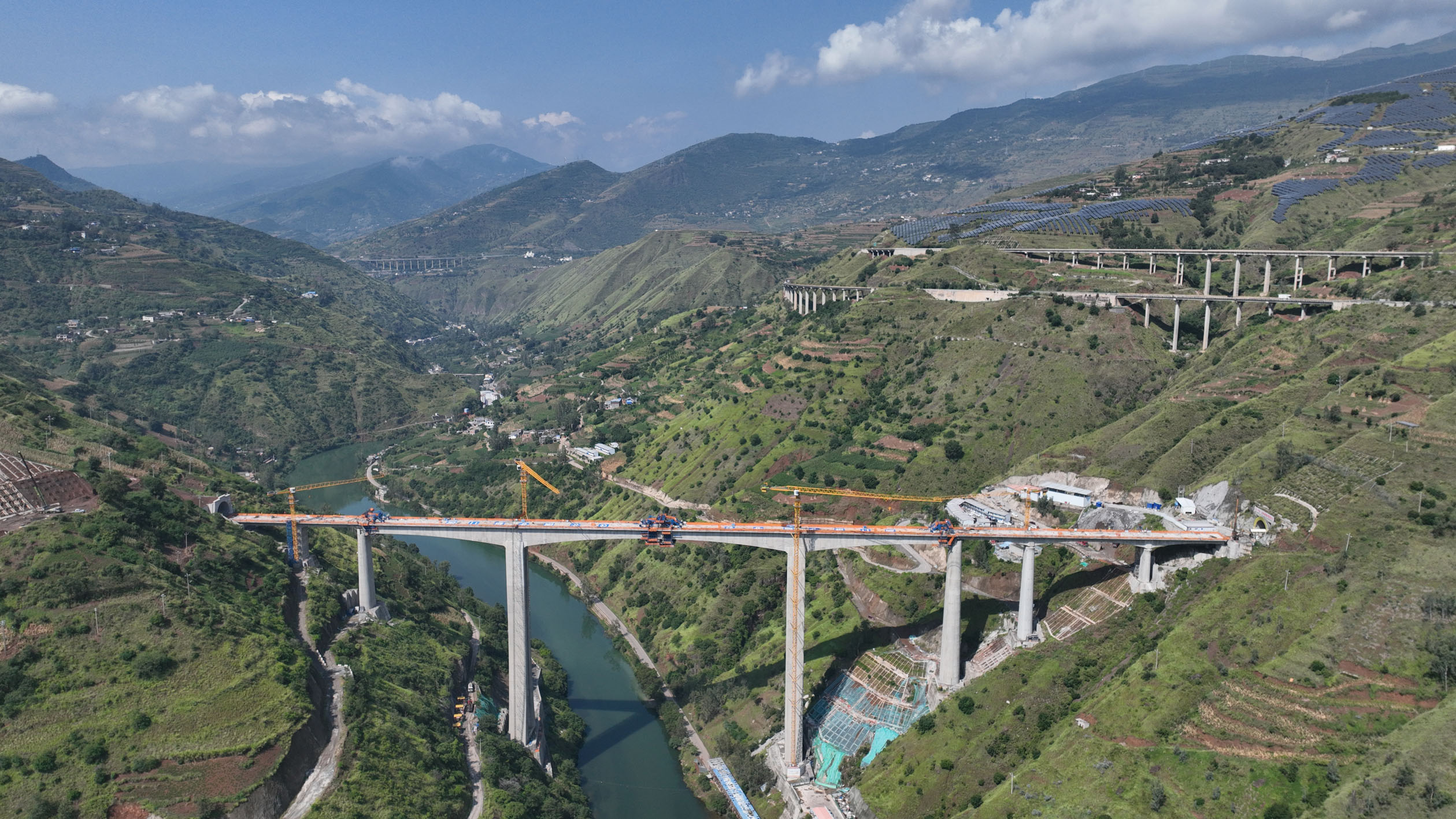 9月7日,渝昆高铁江底牛栏江特大桥实现全桥合龙,标志着桥隧占比高达87.4%的渝昆高铁建设取得关键性突破。