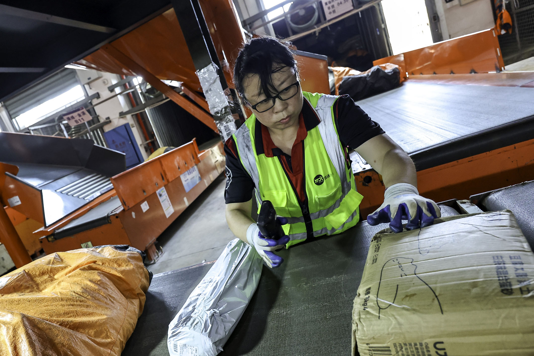 图为在位于江西省上饶市横峰县的一处物流转运中心,工人分拣快递包裹。资料照片