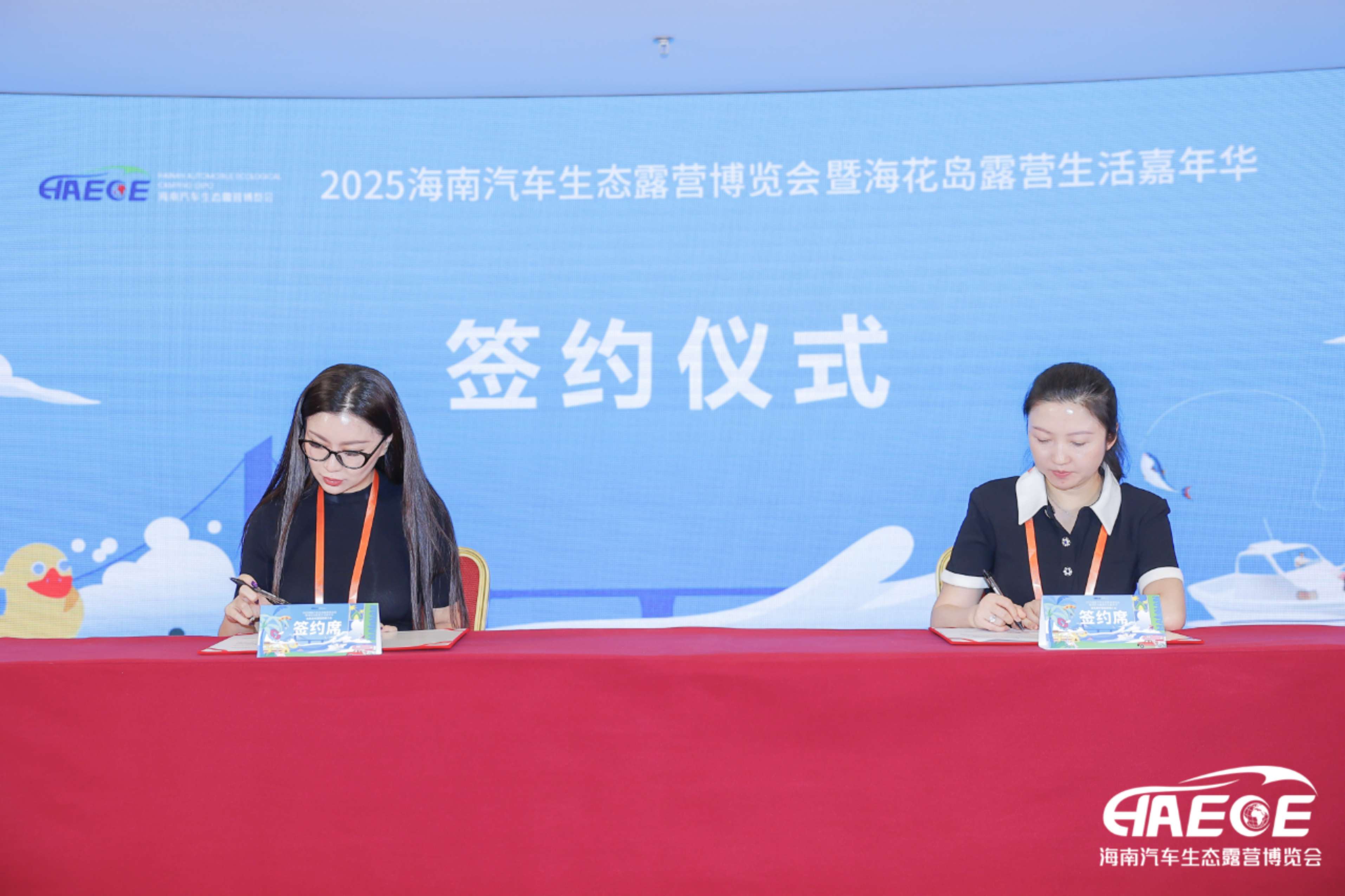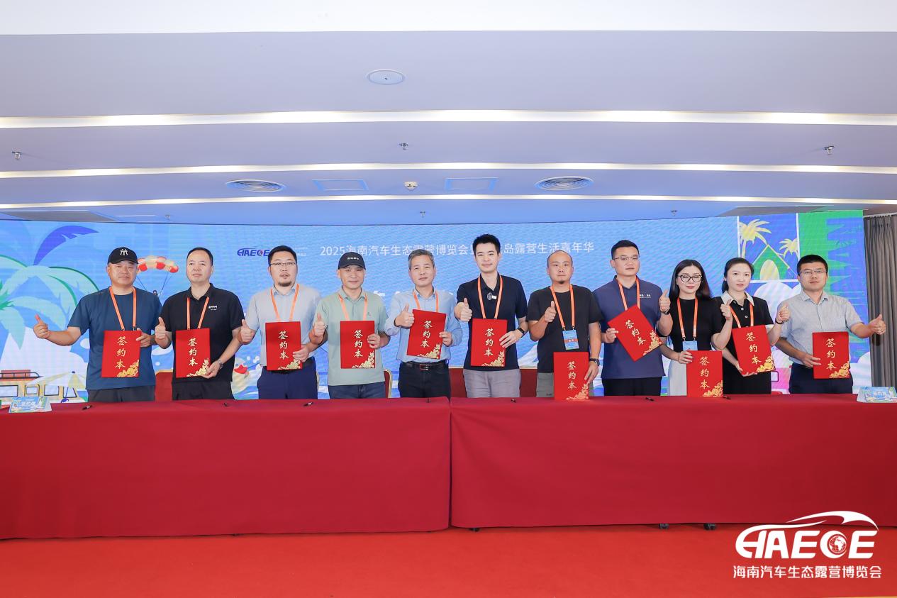 发布会现场的企业签约环节,成为露博会产业号召力的直接体现。ADEX亚洲潜水展与活动承办方之一百瑞国际会展集团签约,将开创“陆地狂欢+海底奇境”的双重沉浸体验;扬州赛德房车、上汽大通房车、浙江新吉奥房车、长城览众房车、北京富日通汽车、常州喜马拉雅户外、上海盈九集团等7家行业领军企业与承办方之一北京东方艾狄尔会展有限公司集中签约,涵盖露营装备、房车制造、文旅运营等多个领域。