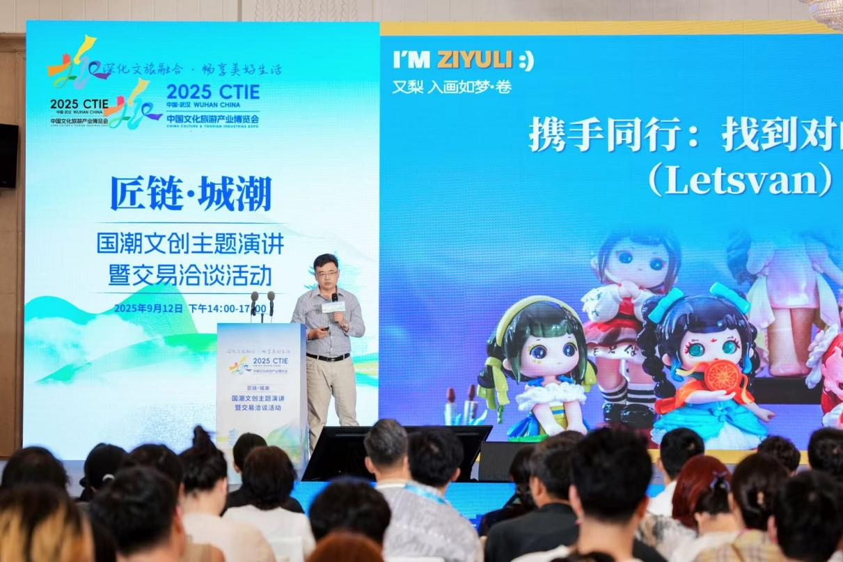 “国潮文创不是简单的‘传统文化+潮流外壳’,它更应该是文旅融合的年轻化翻译器——把厚重的文化遗产翻译成当代人,尤其是年轻人听得懂、愿意传播的语言。”9月12日下午,在2025中国文化旅游产业博览会(CTIE)武汉“匠链·城潮”主题活动上,Letsvan奇梦岛联合创始人、量子之歌集团执行总裁施广强发表主题演讲,深度解析国潮文创如何成为文旅融合的“催化剂”。