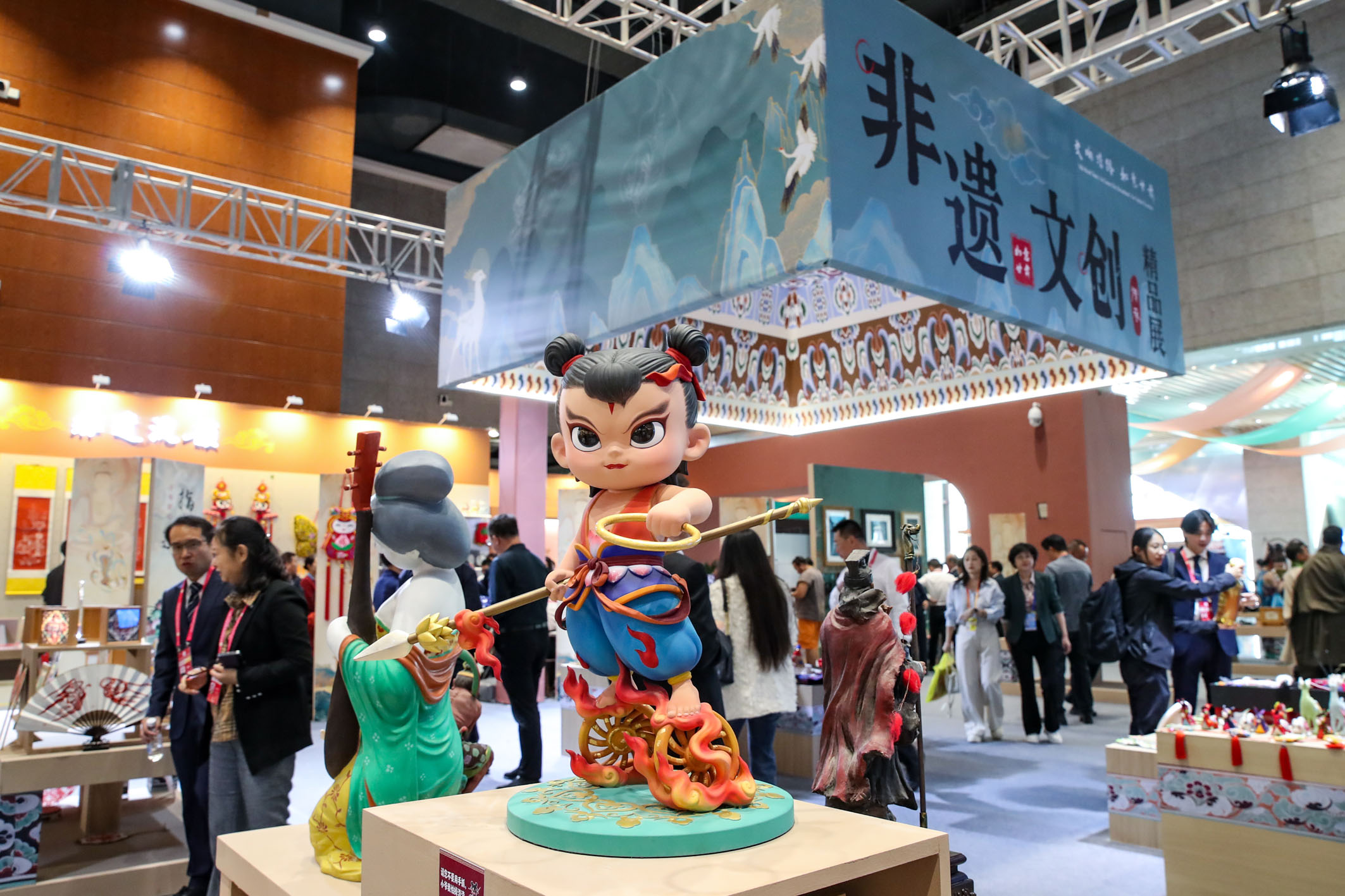 图为与会嘉宾在第八届丝绸之路(敦煌)国际文化博览会上参观甘肃文旅非遗文创展。