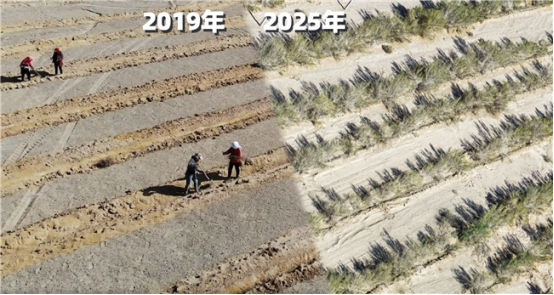 2019年春季,来自全国各地的蚂蚁森林用户代表种下了第一批幼小的梭梭苗。如今,早已“绿树成荫”,最高的梭梭树已达3米。