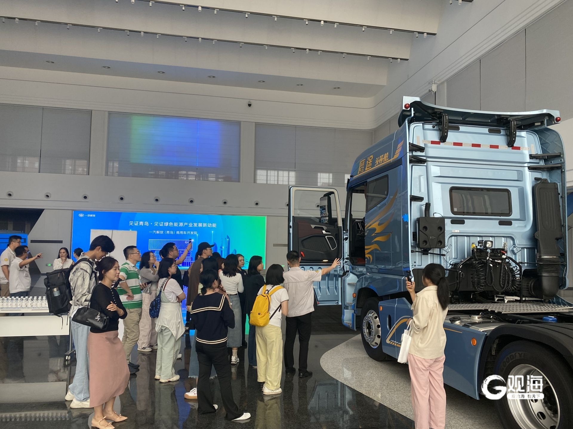 进入开发院,网络媒体和自媒体大V在工作人员引领下现场参观了解放青汽的智驾系列车型、近十年销量达50万辆的JH6车型。据介绍,其智驾系列即便没有网联也可以实现单车智能功能。在新能源应用方面,今年2月,由解放青汽生产的JH6升级版新车上市,其最大亮点之一是车身成功“减重”400公斤。这“减重”的背后,是新结构、新材料、新工艺等22项创新技术的集成应用,其中许多零部件来自本地供应商,展现了整车企业带动产业链升级的辐射力。