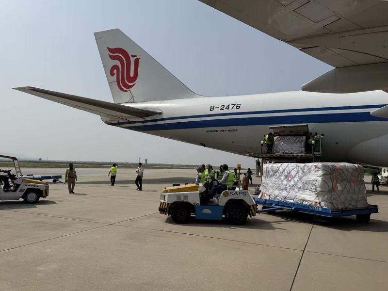 此次运输的物资涵盖毛毯、帐篷、救生衣、睡袋等共计2400余件、89吨。面对物资种类繁杂、时间紧迫,且恰逢国庆假期人手紧张的挑战,国货航展现出高效的组织与专业的执行力:一方面,从航权申请、航路评估到机组选派、航班运行,全流程均进行了细致周密的筹备,并设定备降机场,安排机务人员全程随行,确保航班运行安全可控。另一方面,在提前与海内外代理沟通设备与人力需求的基础上,在安检、入库、组板等关键环节全程开通“绿色通道”,并派遣业务骨干随机赴伊斯兰堡参与卸载作业,为地面保障工作筑牢支撑,以实际行动展现了安全可靠与高效执行的硬实力。