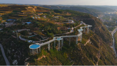 据保德县义门镇庙峁村玻璃栈道负责人侯富荣介绍,玻璃栈道围绕黄河天桥峡谷区位优势与“山水风光秀、人文历史厚”定位,以“生态打底、文旅驱动”为核心,打造“一环、两廊、四区”空间结构,建成玻璃栈道等设施,形成“听黄河涛声、赏晋北风情”的目的地。下一步将依托当地人文景观,推进小吃街、民宿、萌宠乐园等建设,吸引更多周边游客前来体验,实现“一日游”变“多日留”。