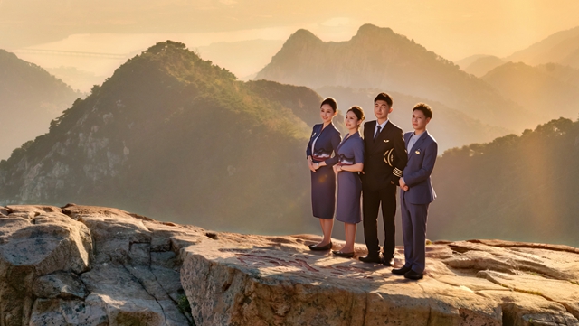 淡金色袖标与东方韵味的精工细节,于国际化风格中隐隐生辉,成为山航飞行员驰骋寰宇、践行安全飞行的精神象征。