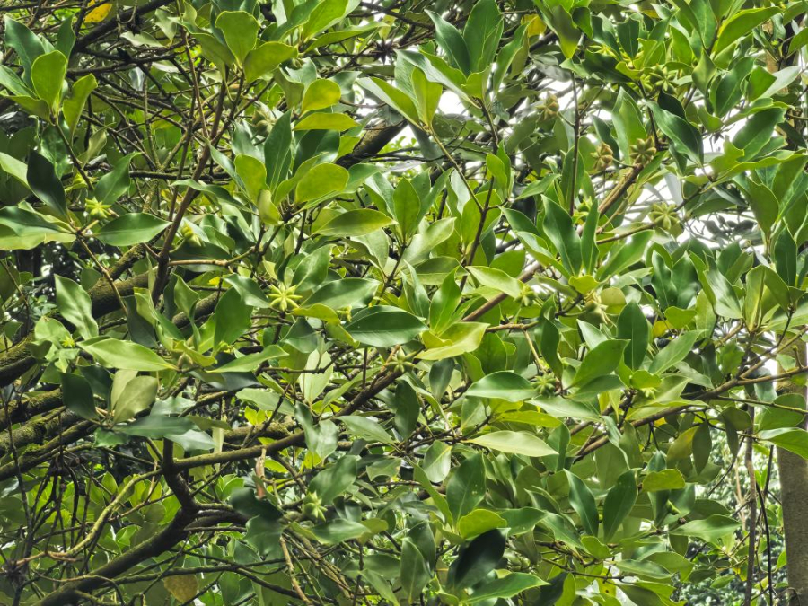 六万林场的八角树上,八角果实挂满枝头。新华社记者王楚然 摄