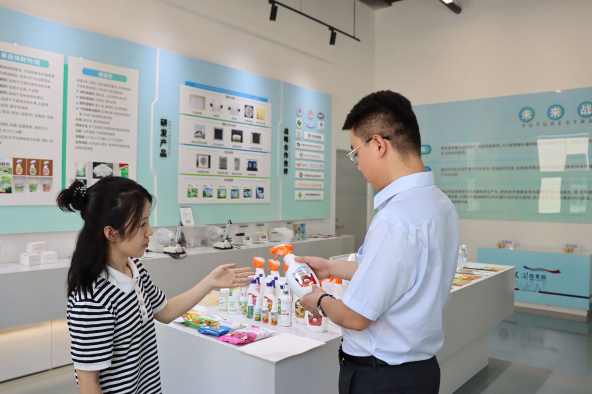 当前永续新材研发加工后的纳米纤维素已在市场多个领域得到应用:喷涂在榴莲表面可形成纳米级保护膜,让马来西亚榴莲运输损耗率从30%降至5%;添加到涂料中能使附着力提升50%;作为农业助剂更可使作物增产20%-30%。这项源自天津大学实验室的突破性技术,如今已成功转化为企业的七大产品系列。
