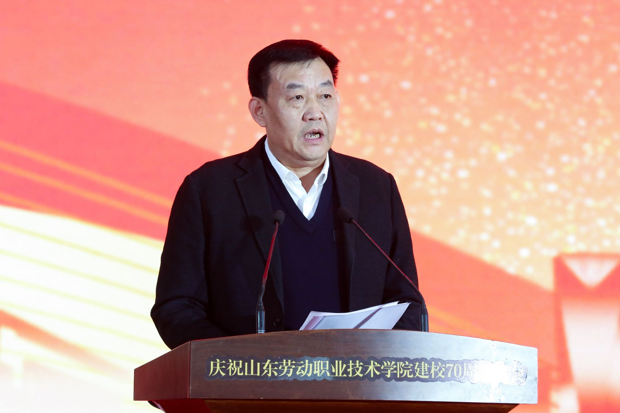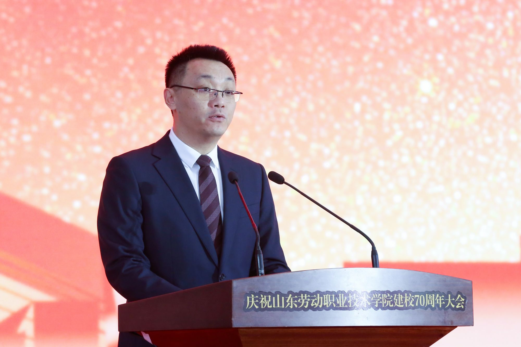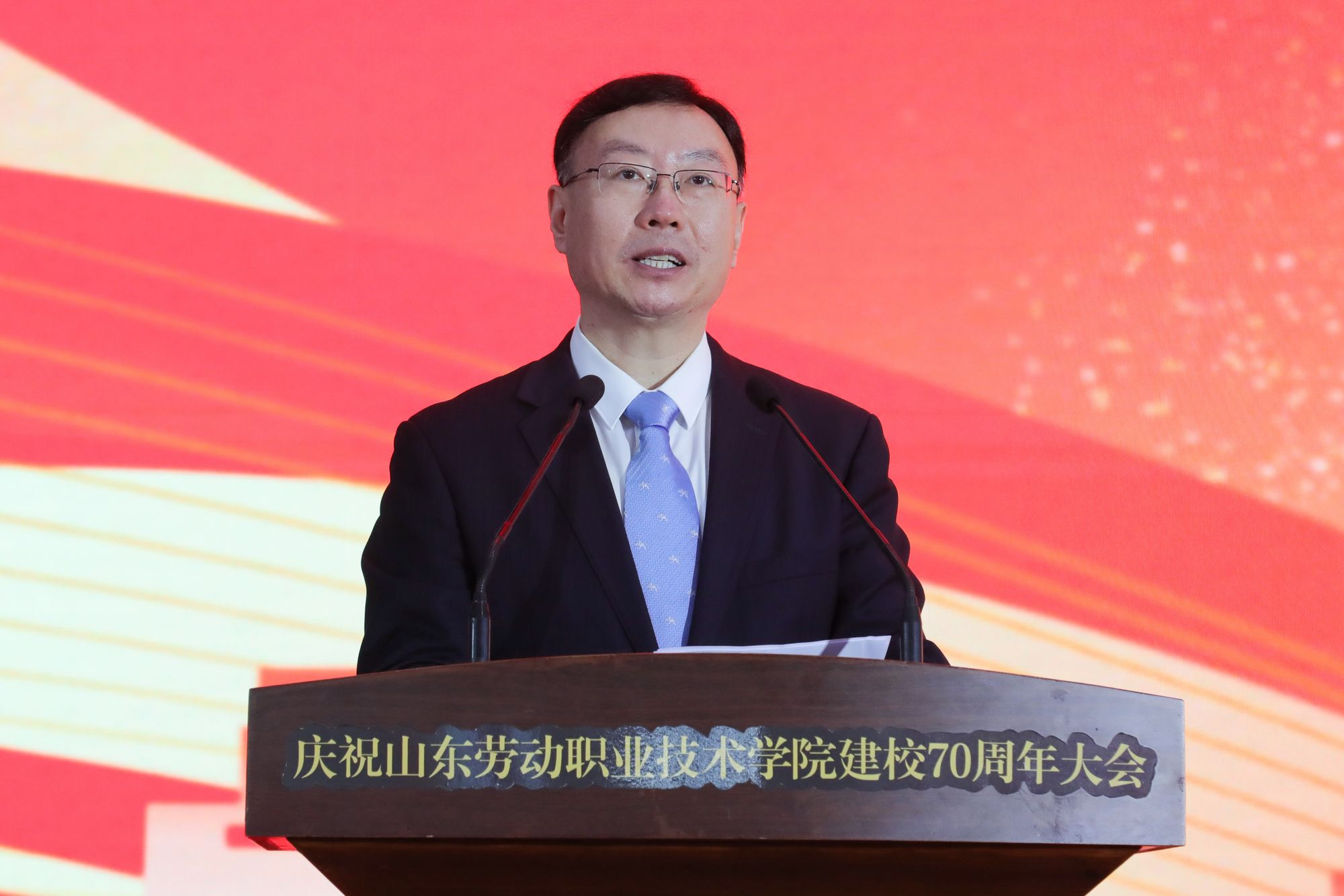 李鹏在致辞中指出,山东劳动职业技术学院一路走来,坚守初心、传承匠心;守正创新、特色发展。站在新的历史起点上,希望学校坚持立德树人,厚植技能报国的精神底色。深化产教融合,打造政校行企协同育人共同体。强化服务能力,成为区域发展的技能引擎。让更多“劳职技能”转化为“山东动能”。