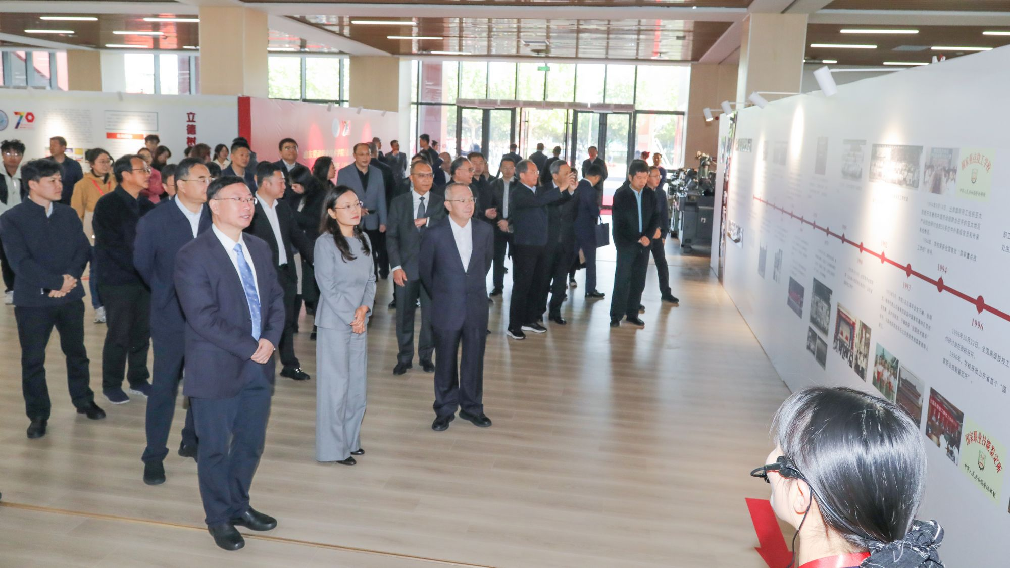 会前,与会嘉宾共同参观了办学成果展。大家纷纷表示对学院70年来取得的成就感到欣慰和自豪,对学院未来的发展充满信心和力量,期待学院以70周年校庆为新起点,培育更多“能工巧匠”“大国工匠”,在职业教育高质量发展道路上书写更多精彩篇章。