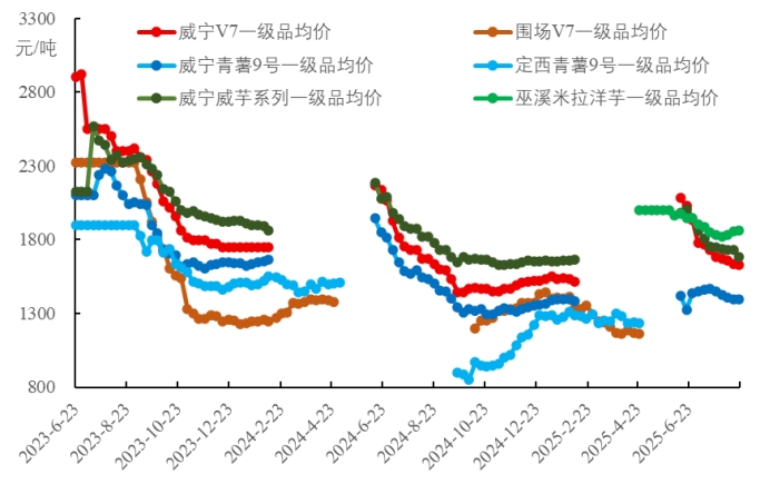 图3. 四个主产区同等级商品薯出货均价对比