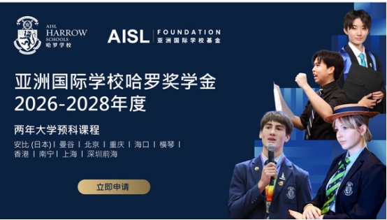 2026-2028年度AISL哈罗奖学金申请于2025年10月20日至11月30日期间开放。该奖学金项目已进入第六年,旨在邀请全球才华出众的青年学生,就读AISL哈罗学校,接受为期两年的高中预科(即英国学制12-13年班、中国学制11-12年班或IB文凭)预科课程教育。