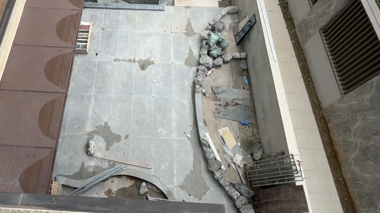 记者在王女士家阳台看到,楼下相邻的两套一二楼叠拼住房已经基本完成了连通改造,与同样的下叠户型相比,这户业主家的花园已经完成了硬化,同样能清楚看到成型的负一二楼的改造。随后记者尝试联系一二楼业主,电话无人接听。