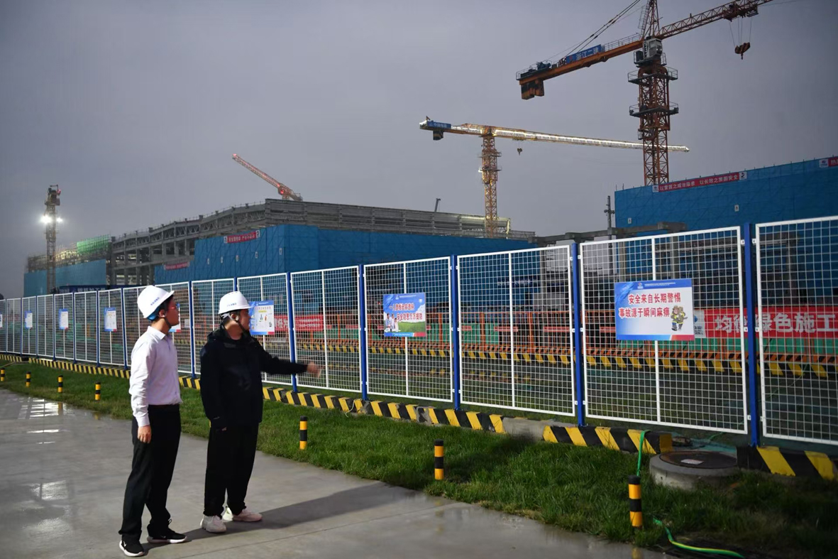 图为农行山东泰安分行客户经理在中电建肥城2×300MW盐穴压缩空气储能电站了解项目建设情况。(资料照片)