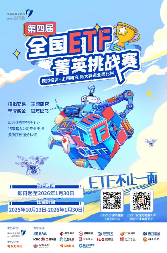 目前,大赛已正式进入比赛阶段,报名通道全面开启。即日起至2026年1月30日,参赛者可通过东方财富App或“东方财富金融素养”微信公众号报名。大赛设有ETF模拟投资、ETF研究两大核心赛道,既为学生们提供理论实践平台,也为社会投资者搭建技能提升渠道,实现对不同背景参与者的精准覆盖。