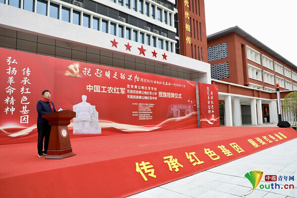 全国红军小学建设工程理事会执行理事长方强表示,红军小学建设工程启动18年来,在全国建成数量已达500所,我们希望以这面鲜红的校旗和光荣的校牌来缅怀革命先辈、传承红色基因,也希望通过红军小学这个阵地,把革命传统发扬好,为革命老区建设发展注入精神动力。