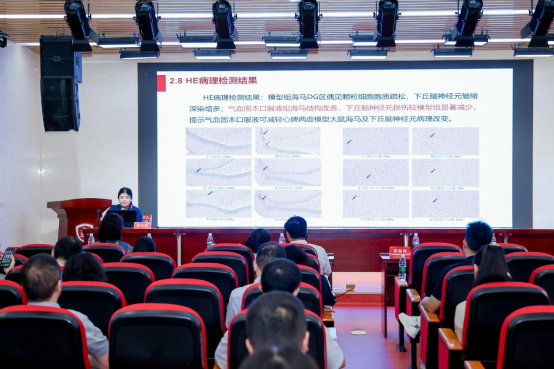 图为2025中国康复医学会中药学与康复专业委员会学术年会,北京中医药大学王景霞教授团队青年学者邵丹玥博士作《气血固本口服液改善失眠的实验研究》主题报告
