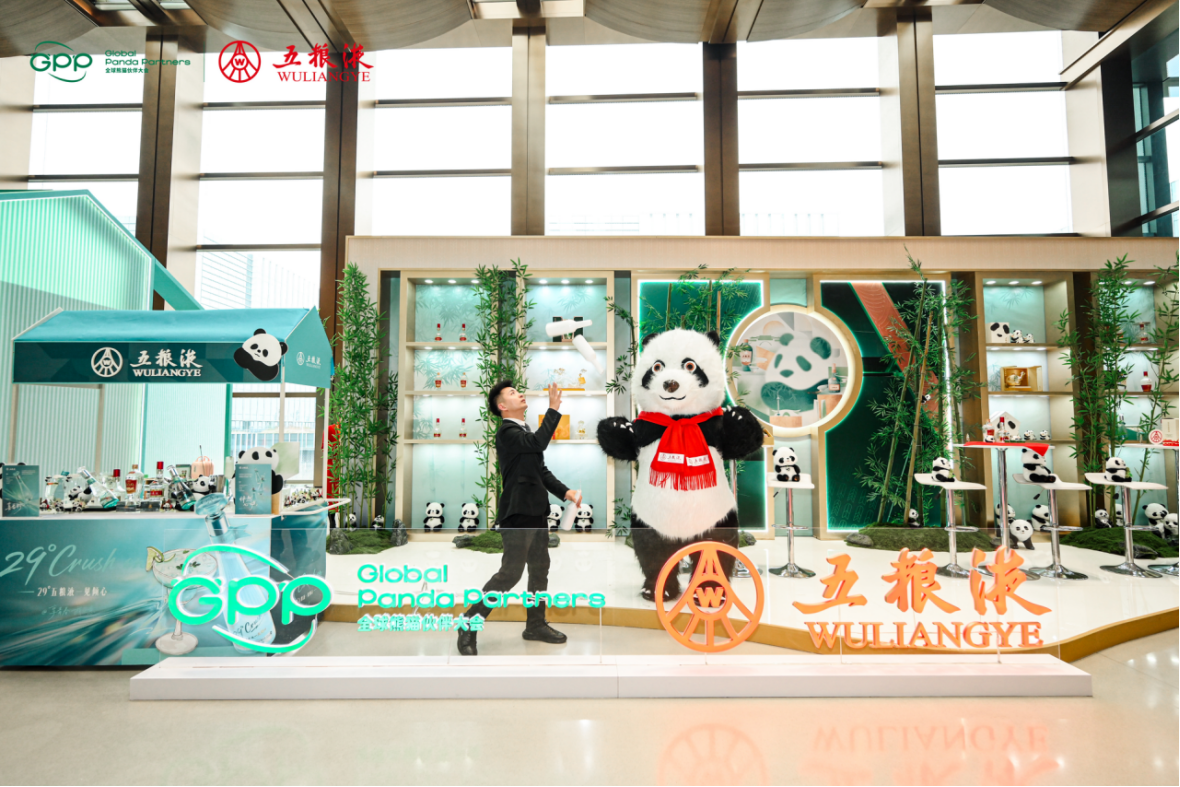 位于熊猫文创集市中心位置的五粮液特装展区同样引人注目,除核心产品外,五粮液·金熊猫纪念酒、五粮液·陶瓷熊猫酒、五粮液·和美四川等含有大熊猫元素的特色产品精彩亮相,向全球“熊猫伙伴”展示五粮液对大熊猫的热爱,诠释巴蜀特色物产的和谐之美。五粮液特饮推车酒香四溢,新品29°五粮液·一见倾心特调,与“喜番柠”“怦然心动”鸡尾酒,直观呈现五粮液年轻化、时尚化的精彩活力,展示白酒多元化饮用方式,吸引现场嘉宾纷纷驻足品鉴。