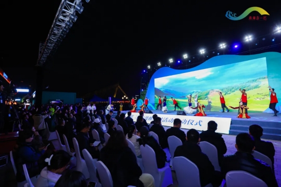 启动仪式在极具丝路风情的龟兹乐舞与库车赛乃姆舞蹈中拉开帷幕。伴随着大屏上浩瀚沙海与克孜尔石窟交相辉映的壮美画面,身着传统服饰的舞者翩跹而至。五弦琵琶奏响千年古韵,绛红绸带如火焰般翻飞,瞬间点燃了现场气氛,市民游客纷纷举起手机记录这跨越时空的惊艳瞬间。“以前只在课本里见过龟兹壁画,没想到现场舞蹈这么震撼!”带着孩子前来观演的李女士赞叹不已。