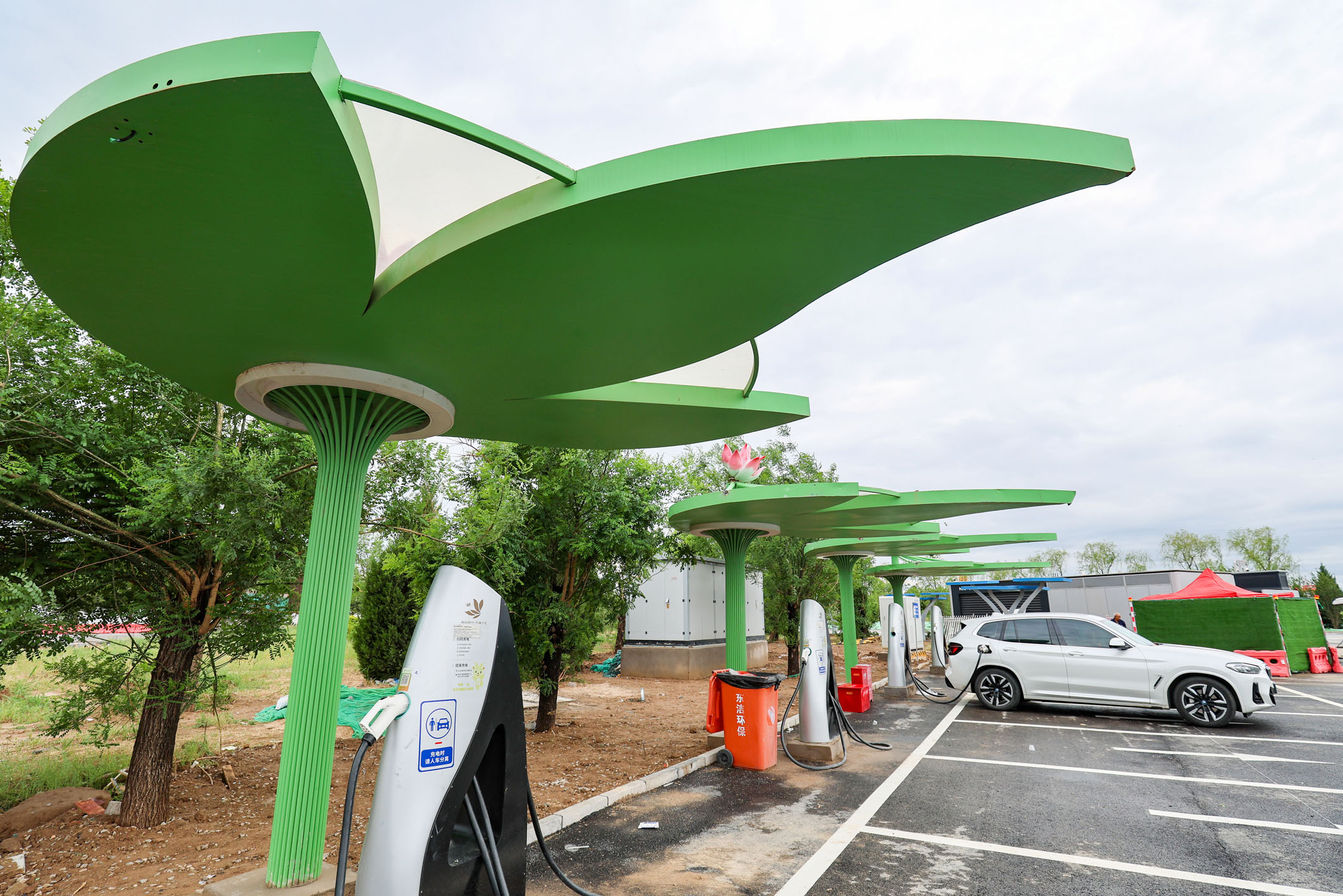 图为新能源车辆在京港澳高速河北段石家庄东服务区的充电区域充电。(资料照片)