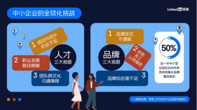 近日,领英针对全球市场发布了《2026中小企业研究报告》(下文简称“报告”)。报告显示,中小企业贡献了约70%的全球GDP。通过数字化转型与全球资源整合,我国中小企业呈现了产城融合出海、供应链集群抱团出海的全新发展格局,开辟出“数智赋能+信任驱动+人才为本”的出海新路径。