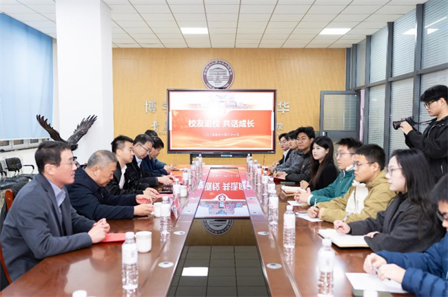 杨赟在会见时代表学校对乔冰返回母校表示欢迎,对他心系母校发展、情系青年学子成长致以诚挚感谢。他表示,学校事业的高质量发展离不开广大校友的大力支撑,学校将健全机制、拓宽渠道,进一步深化母校与广大校友密切联系,推动互促共荣发展。乔冰表示,感谢母校和老师们的辛勤培养,反哺母校、助力学弟学妹成长是自己应尽之责,能为母校人才培养略尽绵薄之力,深感荣幸。