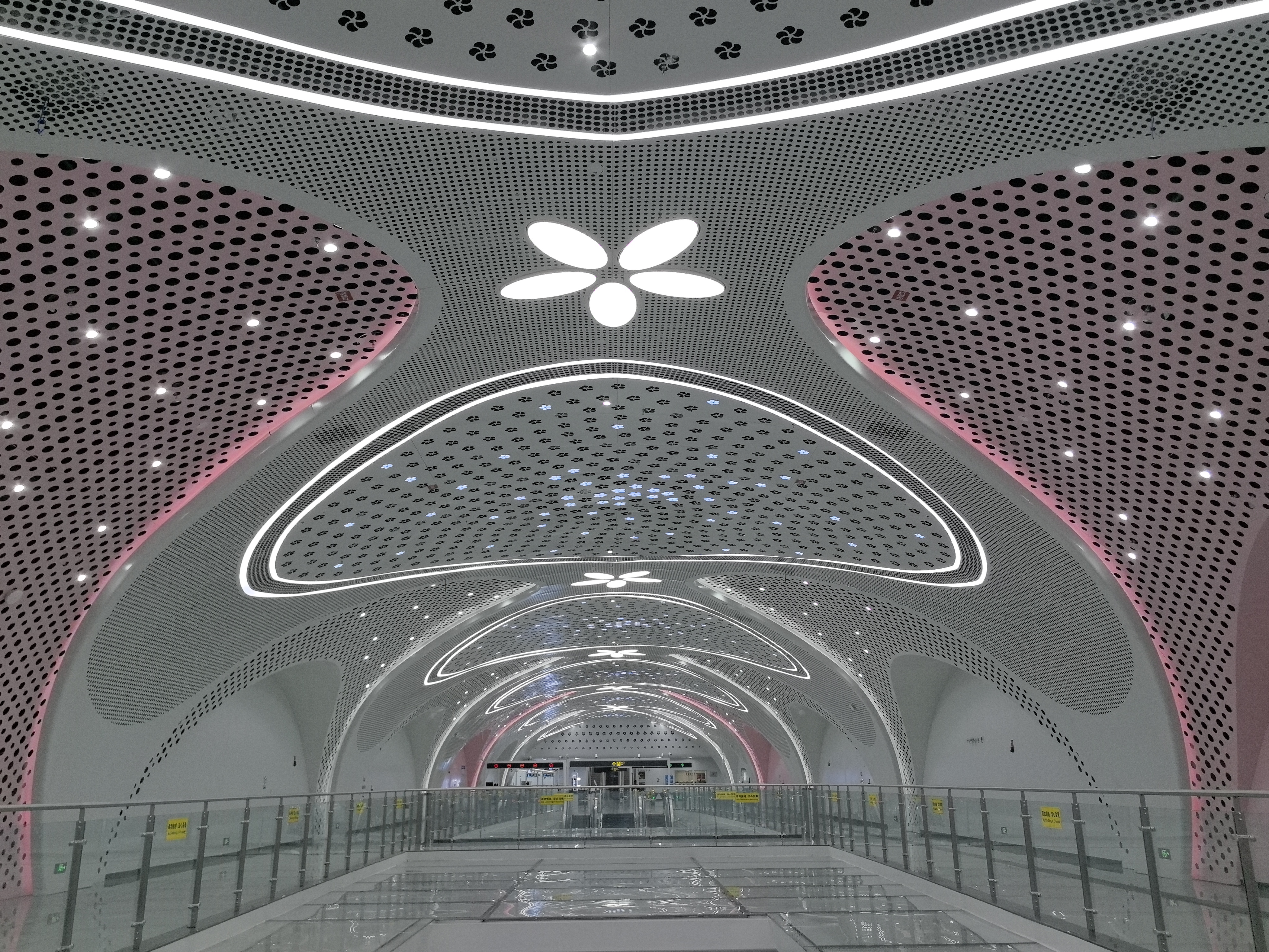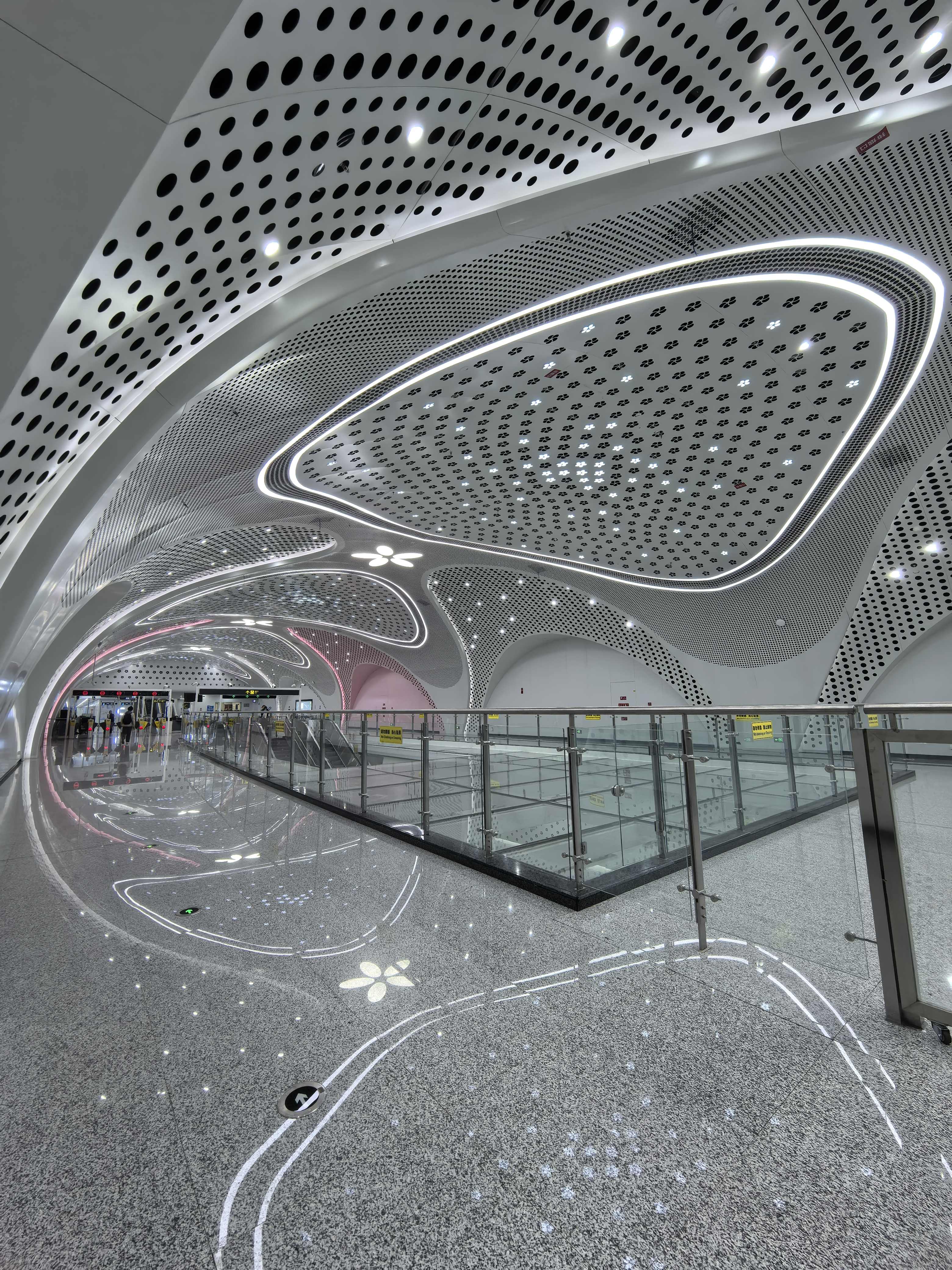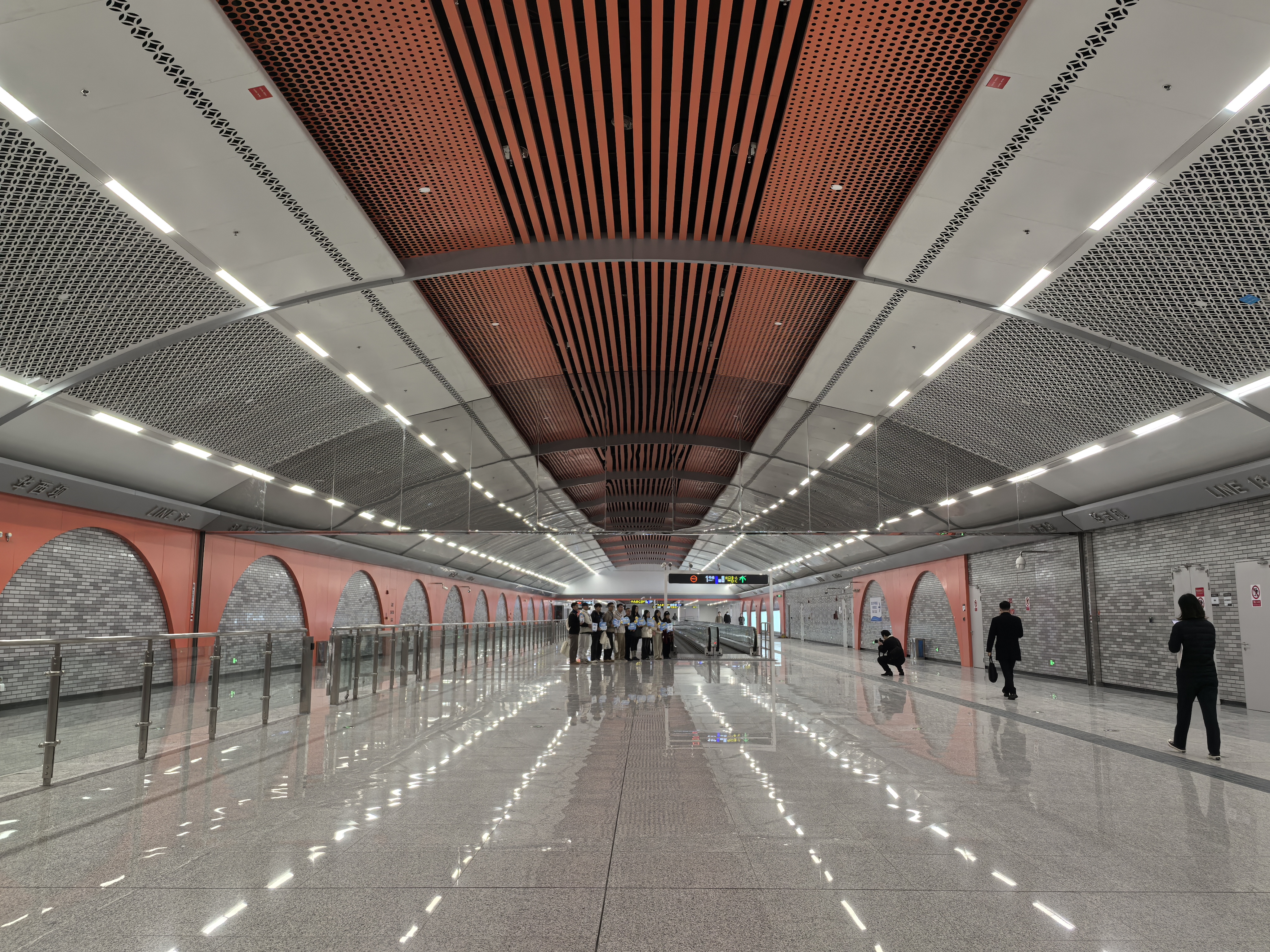 “刚上扶梯就听到一片‘哇’声!”市民代表余女士带着女儿走进30号线幸福梅林站,女儿兴奋地指着弧形拱顶喊道:“好像走进了梅花林!”该车站以梅花粉与白色交替搭配,全长221米的弧形拱顶下无一立柱,视野开阔如艺术展厅。装修负责人严学波介绍,设计灵感正源自地上的幸福梅林景区,实现了地下空间与地上文化的和谐对话。