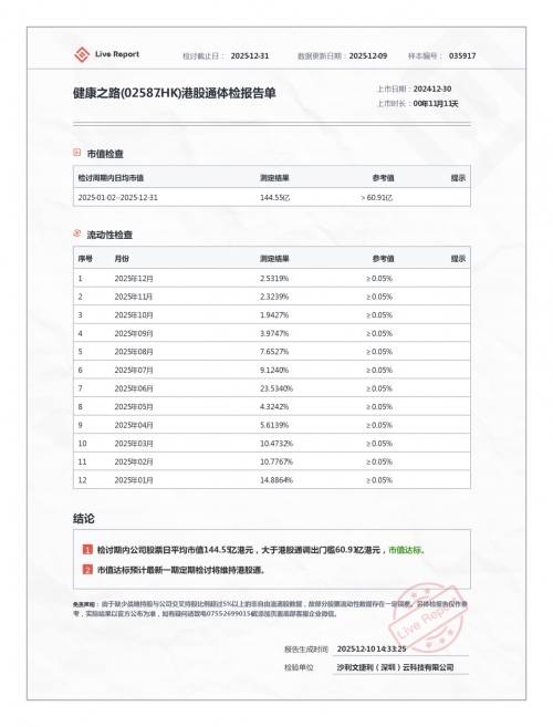 近期,健康之路(02587.HK)股价出现波动,有分析认为,可能部分投资者担忧其能否维持港股通资格有关。港股通资格对于连接内地投资者至关重要,其维持需满足包括市值、流动性在内的多项标准,其中稳定的市值表现是公司维持这一关键通道的核心要素。