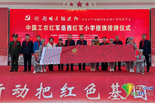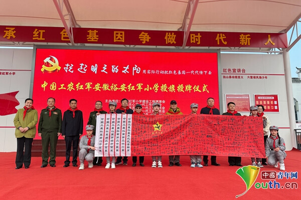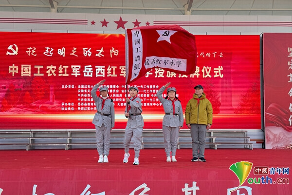 12月10日、11日,全国红军小学建设工程理事会一行先后前往安徽省六安市、安庆市,举行中国工农红军安徽裕安红军小学、岳西红军小学授旗授牌仪式。
