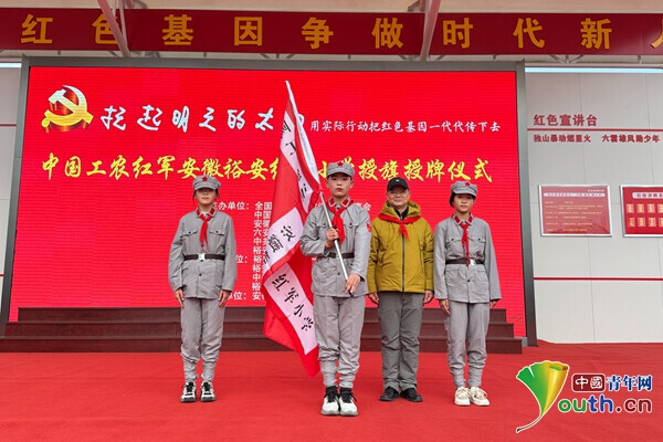 两所红军小学授牌 红军小学旗帜飘扬在大别山