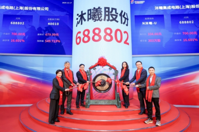 12月17日,沐曦集成电路(上海)股份有限公司(股票简称:沐曦股份,股票代码:688802.SH)正式在上海证券交易所科创板挂牌上市。