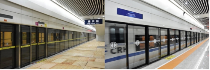 该站台门突破传统固定式结构桎梏,采用全滑动式设计,实现站台门“找”列车门,门体可在列车停稳后自动寻找至车门位置,实现精准对位,满足各类车型需要。