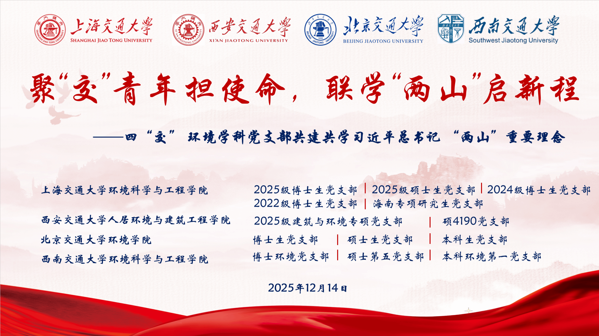 本次“聚‘交’青年担使命,联学‘两山’启新程”主题党日活动,以交通大学130周年校庆为契机,以“两山”理念为指引,搭建了四校环境学科党建交流与协同育人的重要平台。展望未来,四校将持续深化联学共建,将交大精神切实融入建设美丽中国的时代使命,引导学生党员在科研攻关与生态治理中挺膺担当,在生态治理中积极作为,以专业能力与实际行动,为建设美丽中国注入坚实的交大力量。(黄泳桦)