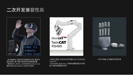 据了解,星动XHAND1兼容性高,二次开发友好。它兼容ROS2和ROS1,支持Ubuntu操作系统,适配x86和ARM架构,多接口适配,支持实时性场景EtherCAT/RS485、TwinCAT,可与xARM、Realman、UR等机械臂适配为科研客户提供便捷算法研究。这也让星动纪元灵巧手成为全球科研机构研究使用的宠儿。