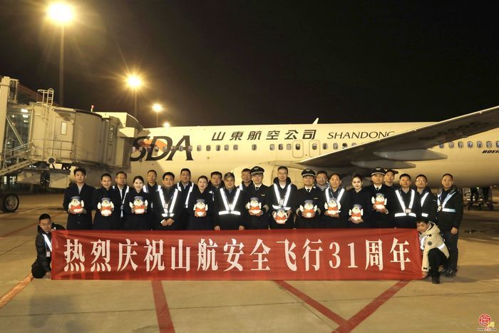 2025年12月26日,山航集团实现安全飞行31周年。当日,客舱服务部在济南、青岛、烟台、厦门、重庆、北京、乌鲁木齐等地出港的航班上,开展了“三十一载蓝天情,山航筑梦续新程”主题机上活动,与旅客共同回顾公司三十一年来的发展历程。