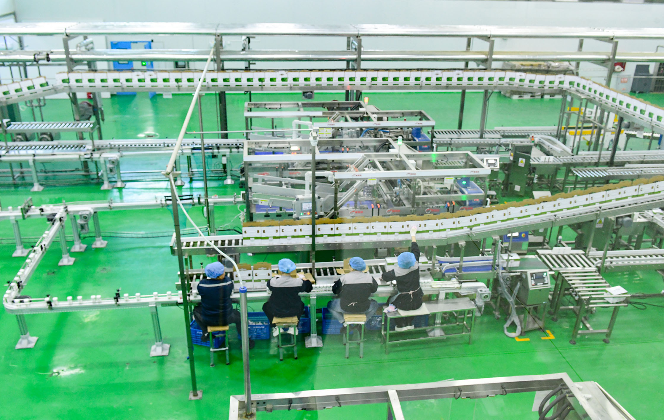 在巴彦淖尔市旭一牧业有限公司,工人们在液态奶包装车间作业。康文魁 摄