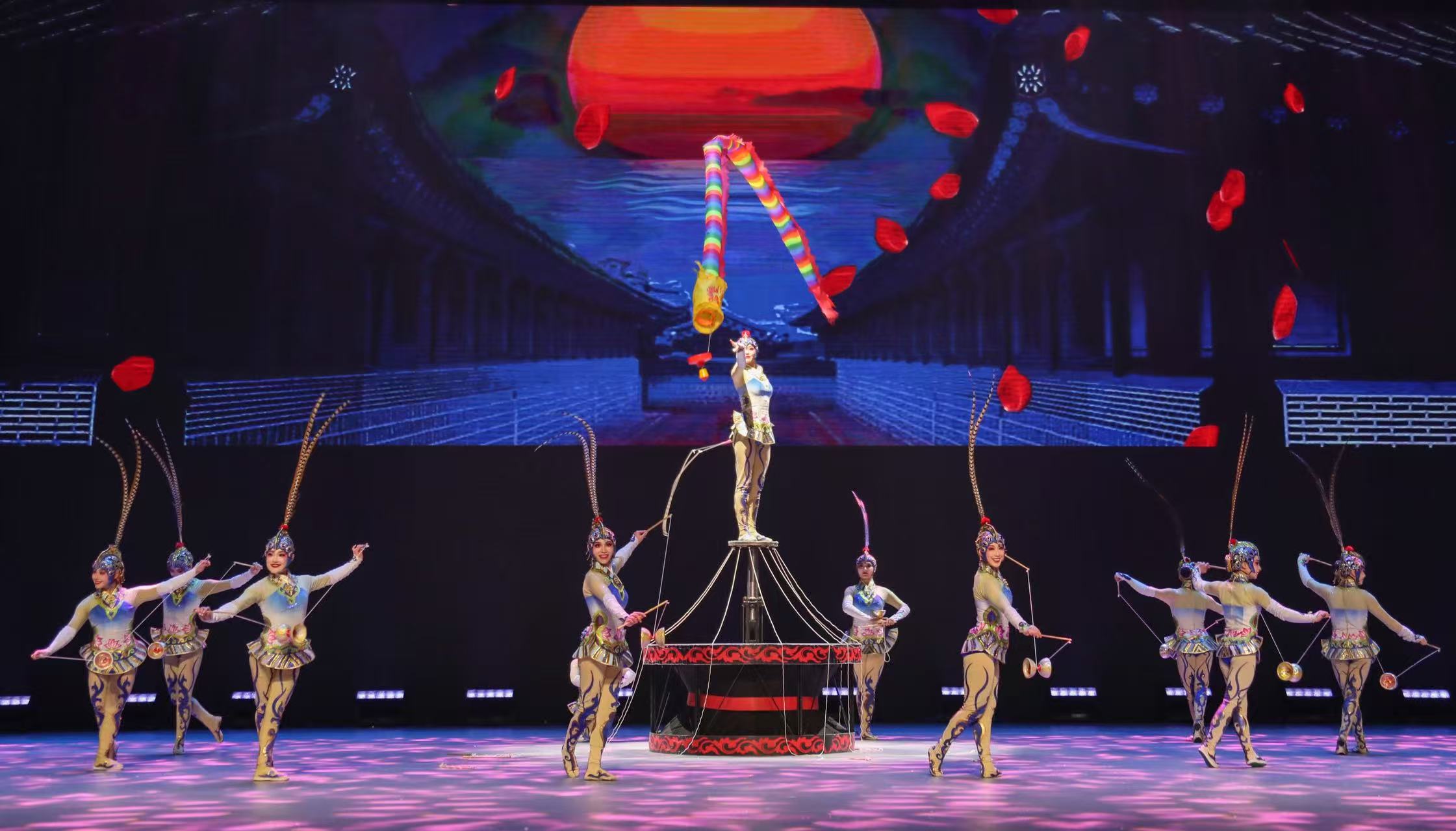 演出尽显中华优秀传统文化之美。《龙跃神州——中幡》集“惊险奇美”于一身,融入京剧元素、古典舞与武术的动作特点,腾挪翻转间将古老中幡艺术的雄浑与新时代的昂扬气象徐徐铺展。《梁祝——肩上芭蕾》以梁祝为故事基线,女演员在男演员“3厘米见方”的肩上和头上展翅起舞,完成足尖站肩等一系列高难度动作。《俏花旦——集体空竹》通过服饰、音乐、动作、身段等京剧元素在节目中的大胆成功运用,文活武演,体现了国粹的大气、典雅、华丽,展现了精雕细琢的京味风情。《大鱼——吊环》以高空吊环为载体,结合流行乐曲《大鱼》,演员宛如灵动的鱼儿,轻盈地穿梭于环间,将观众带入充满诗意与浪漫的海洋世界。