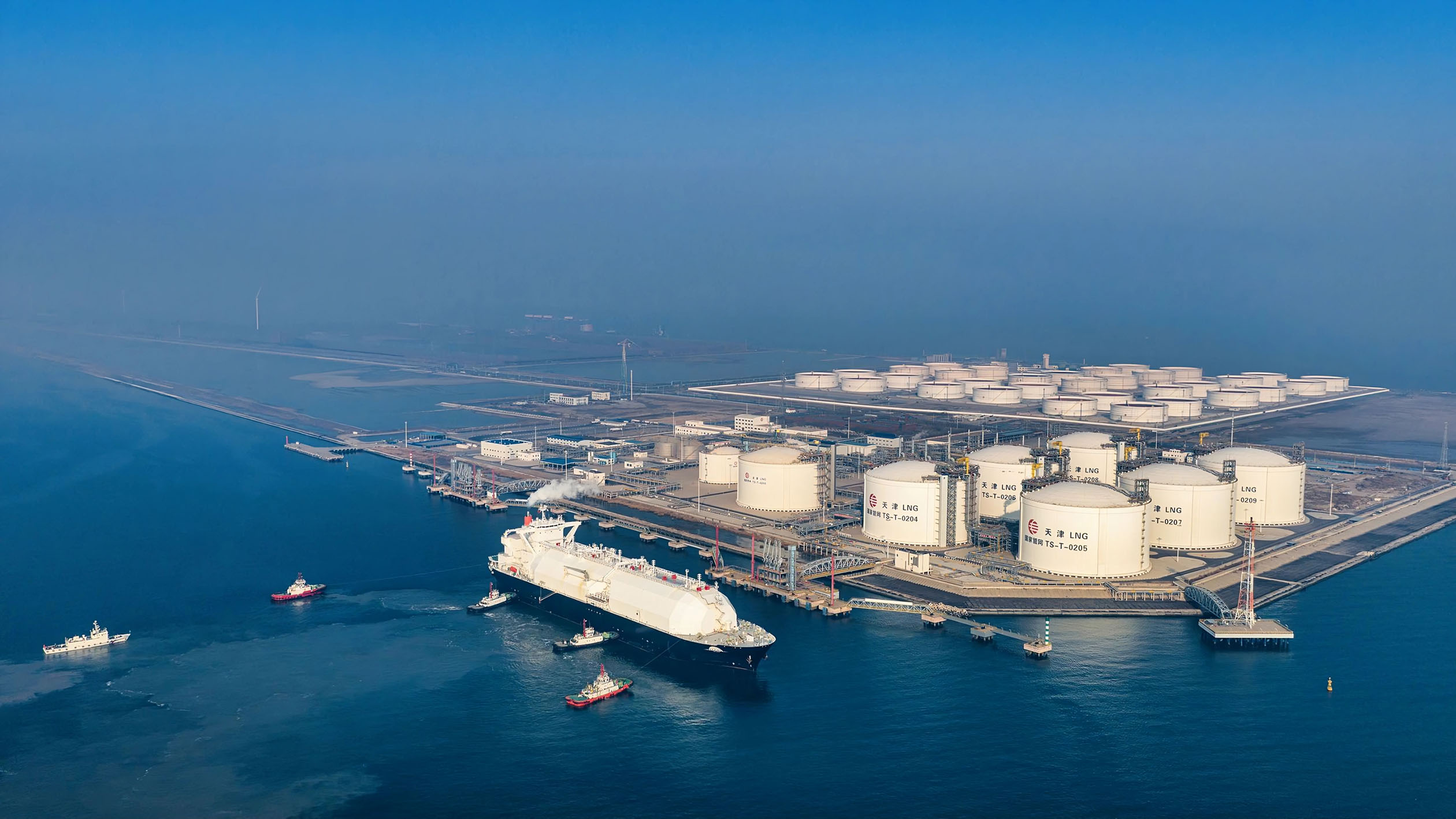 1月5日,来自海外的“马斯”号LNG(液化天然气)运输船装载6.44万吨LNG靠泊在国家管网天津LNG接收站码头,这是该接收站在2026年迎来的首船LNG接卸作业。